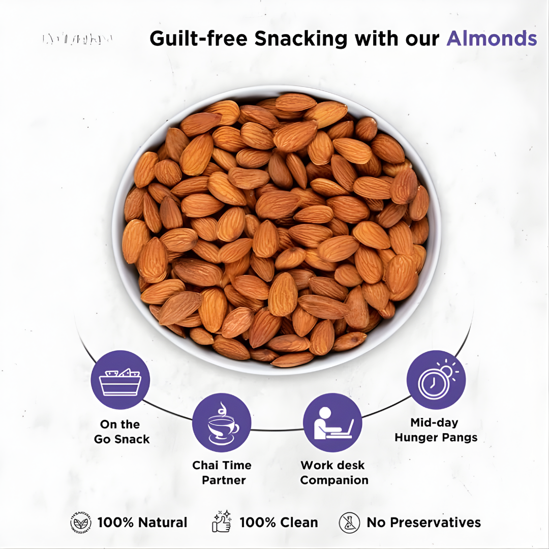 • Heart Health: Almonds help maintain healthy cholesterol and blood pressure levels.