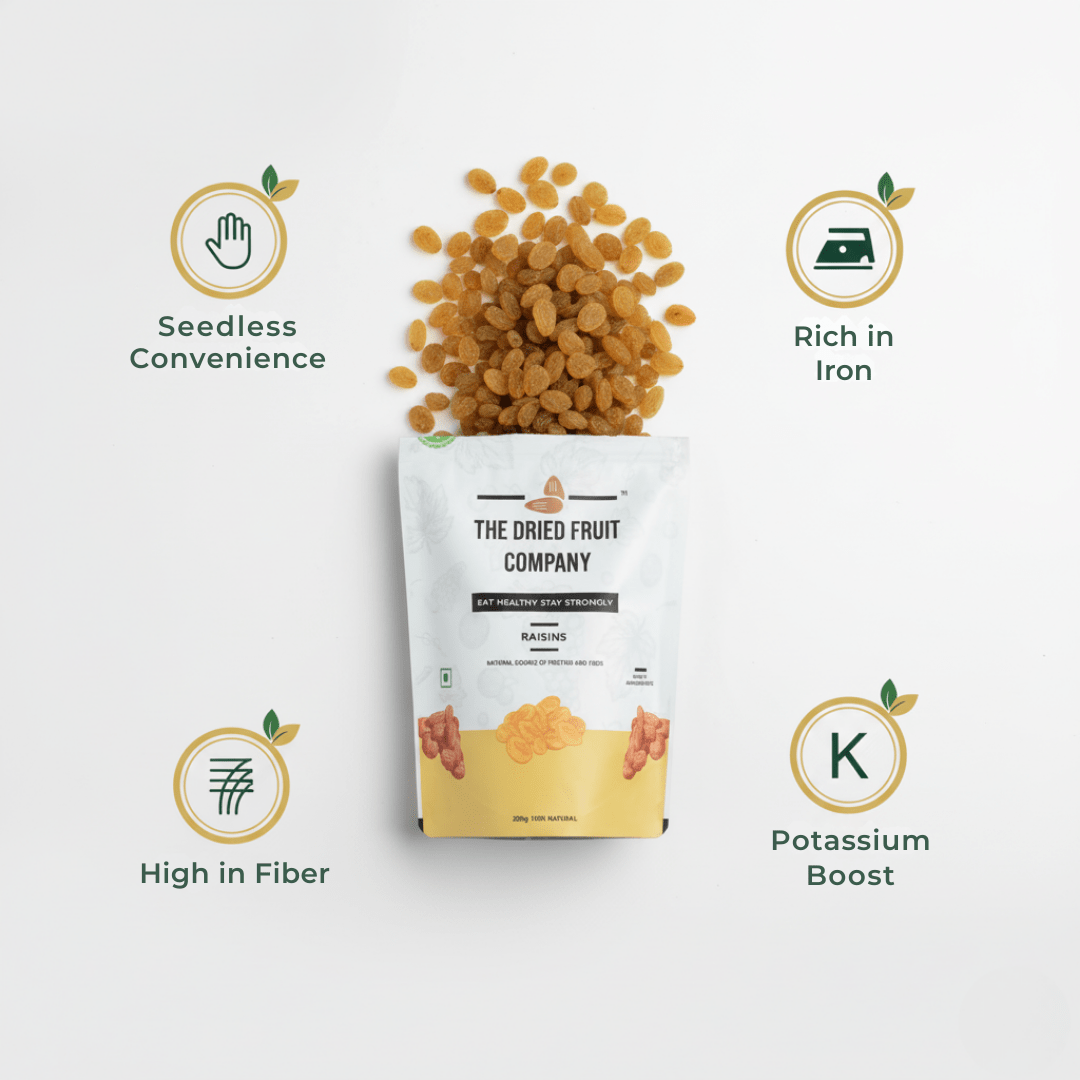 Golden raisins are among the healthiest dried fruits, packed with fiber, potassium, antioxidants, and vitamin K. This 250g pack is perfect for daily snacking, adding to recipes, or mixing with other dry fruits for a nutritious trail mix.