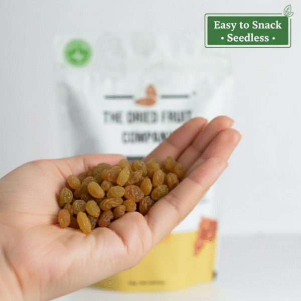 • Premium Golden Raisins – 250g pack of seedless dried fruit.